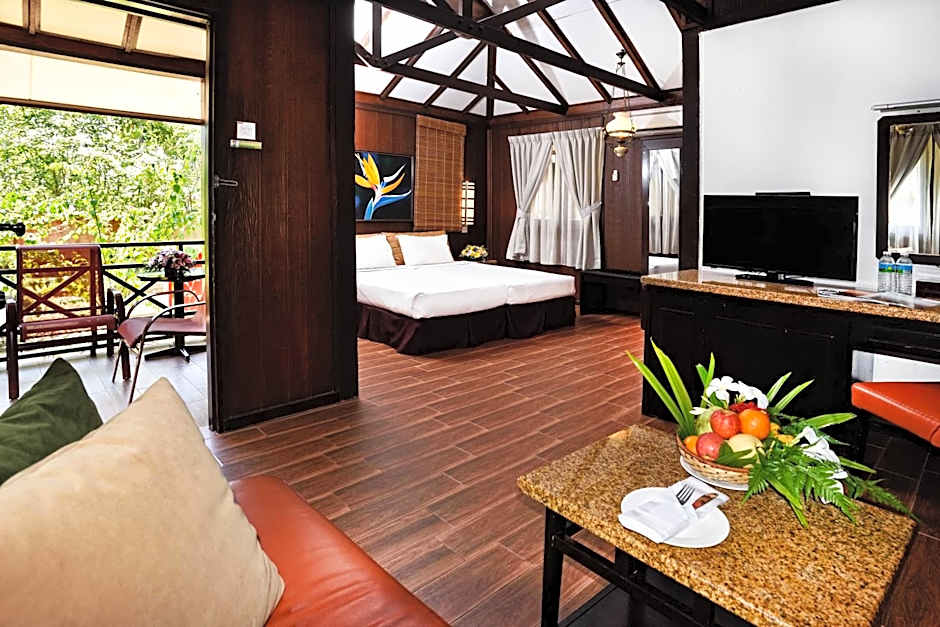 Villas come with a balcony offering garden views. Rooms are fitted with a mini-bar, TV and private bathroom.